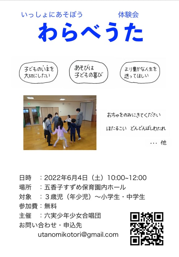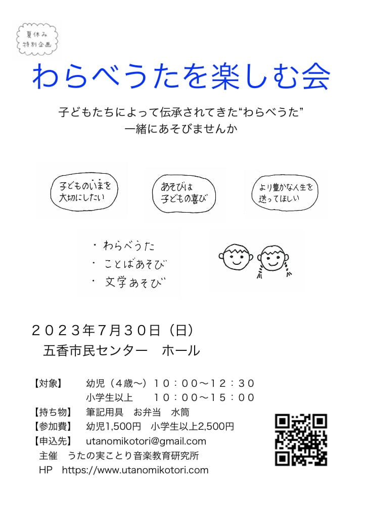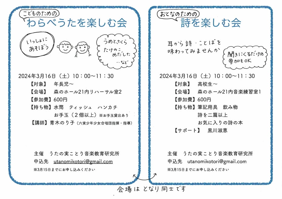 こどものための「わらべうたを楽しむ会」おとなのための「詩を楽しむ会」
